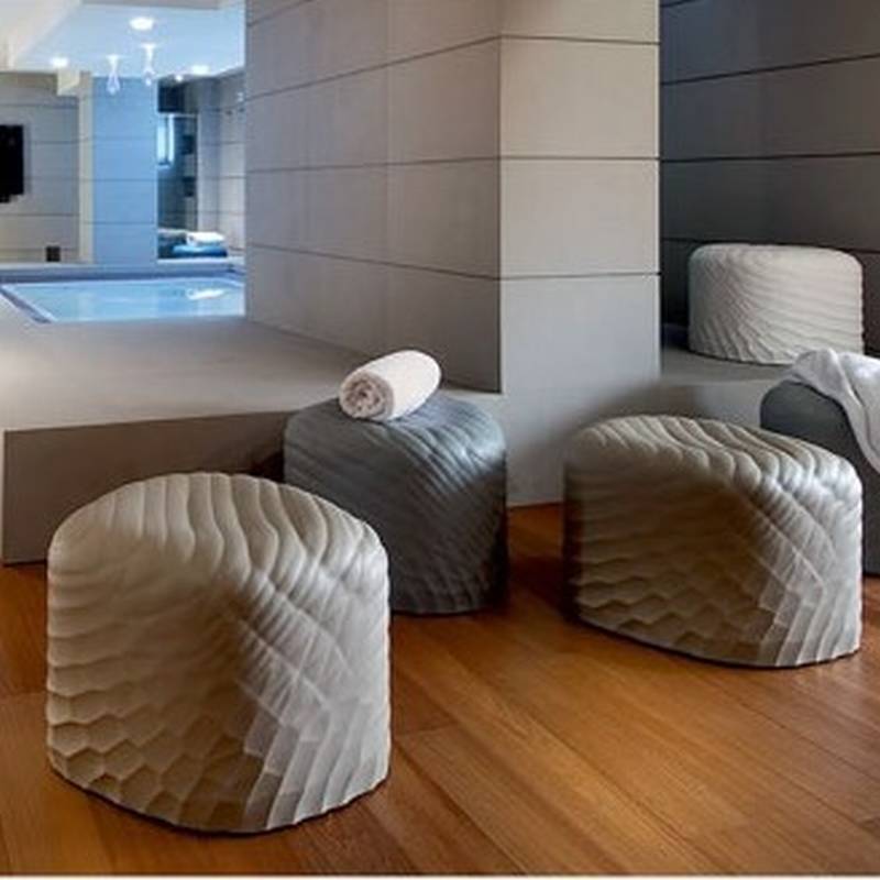 The 3D design of Tonon’s River Stone Pouf gives the product a particular touch. This pouf that looks like a stone, gives a pleasant sensation of softness and comfort, is very easy to move, and is waterproof thanks to its compact external polyurethane surface.